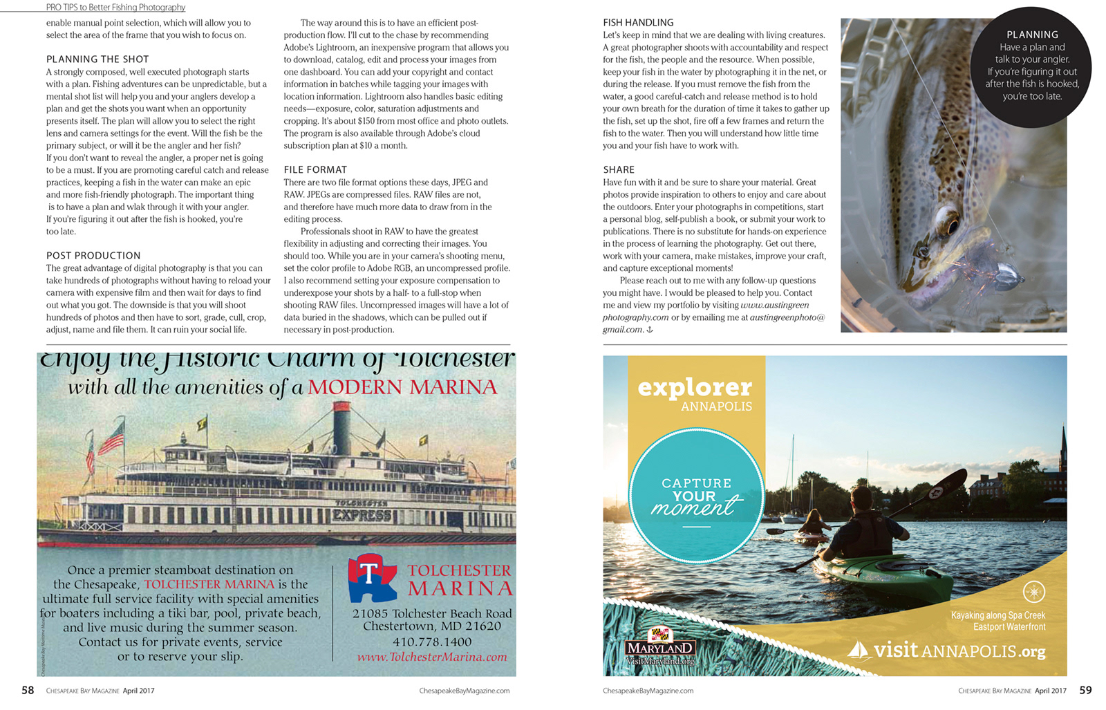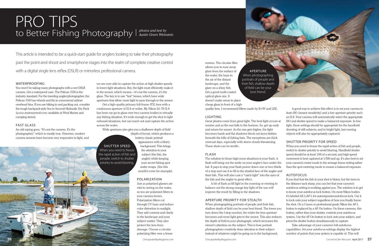 Feature & Cover -- Chesapeake Bay Magazine -- April 2017 "You won't be taking many photographs with a wet DSLR camera..."
